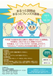 今年度で6回目を迎える「まるっと説明会(R8年2月21日開催)」に向けてイメージキャラクターを募集します。