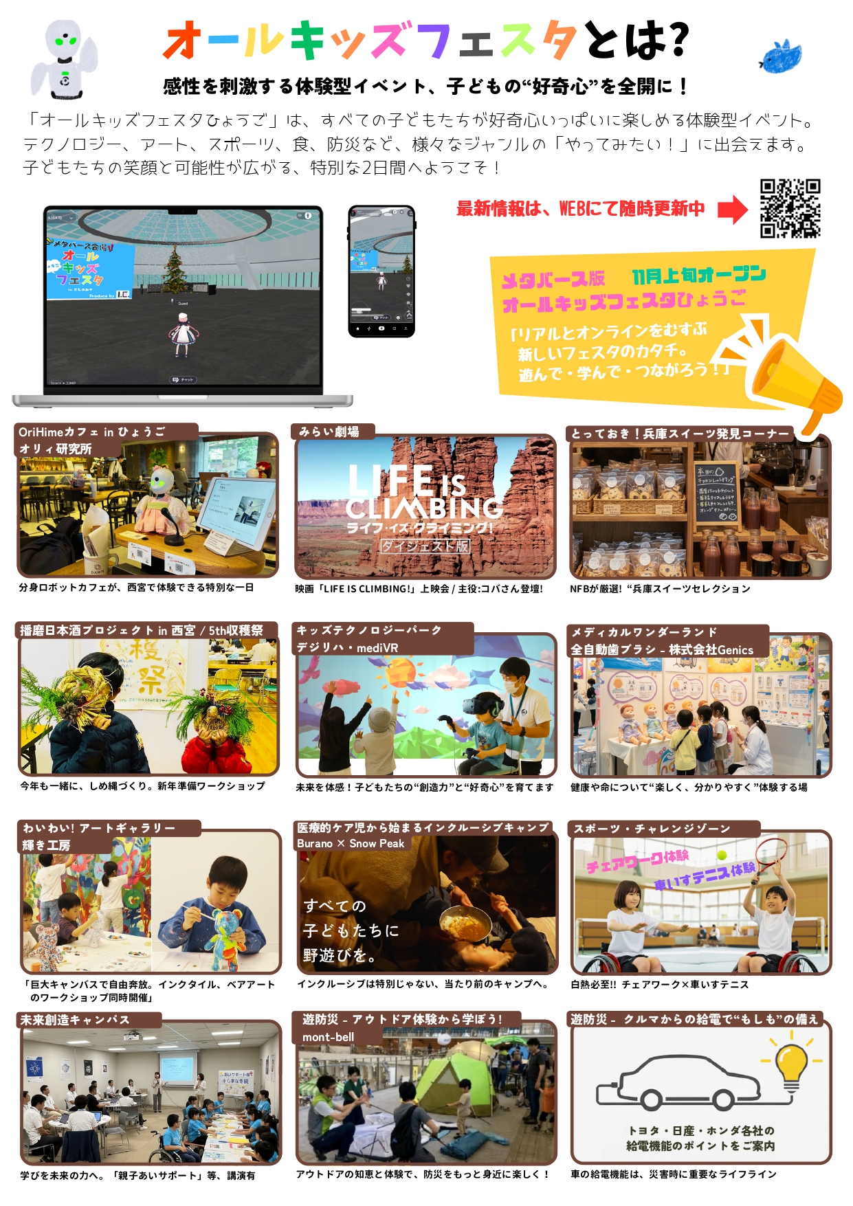 ・みらい劇場 ・とっておき!兵庫スイーツ発見コーナー ・わいわい!アートギャラリー ・医療的ケア児から始まるインクルーシブキャンプ ほか多数 詳しくは、 |