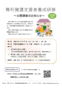 今回、研修の受講生以外の方も聴講できる公開講座を開催します。