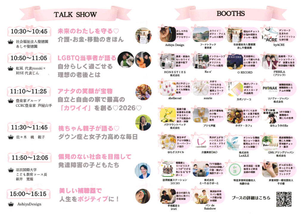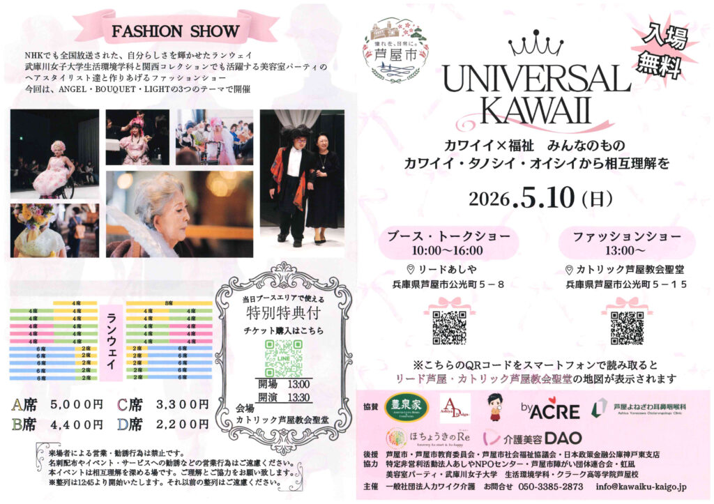 | 日程 | 令和8年5月10日(日) ★ブース・トークショー 午前10時~午後4時 リードあしや(芦屋市公光町5-8) ★ファッションショー 午後1時~ カトリック芦屋教会聖堂 |